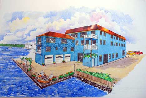 Harbor Lights/Hurdle Hardware - Elizabeth City, Located in downtown Elizabeth City, this "Green" project is converting an old hardware store into a mixed use development similar to that of Water Street Commons.  The highlight of this development is the river view.  All 6 residential units enjoy a view looking down the Pasquotank River.  The project required adding a new roof allowing for a third floor to be constructed.  Another feature not readily found in a downtown environment is dedicated on-site parking.  The project was designed to capture the charm of the water, and therefore, each unit has a private balcony or deck.  There is also a common area deck with a planned pergola and gas fogata fire pit located along the river's edge.